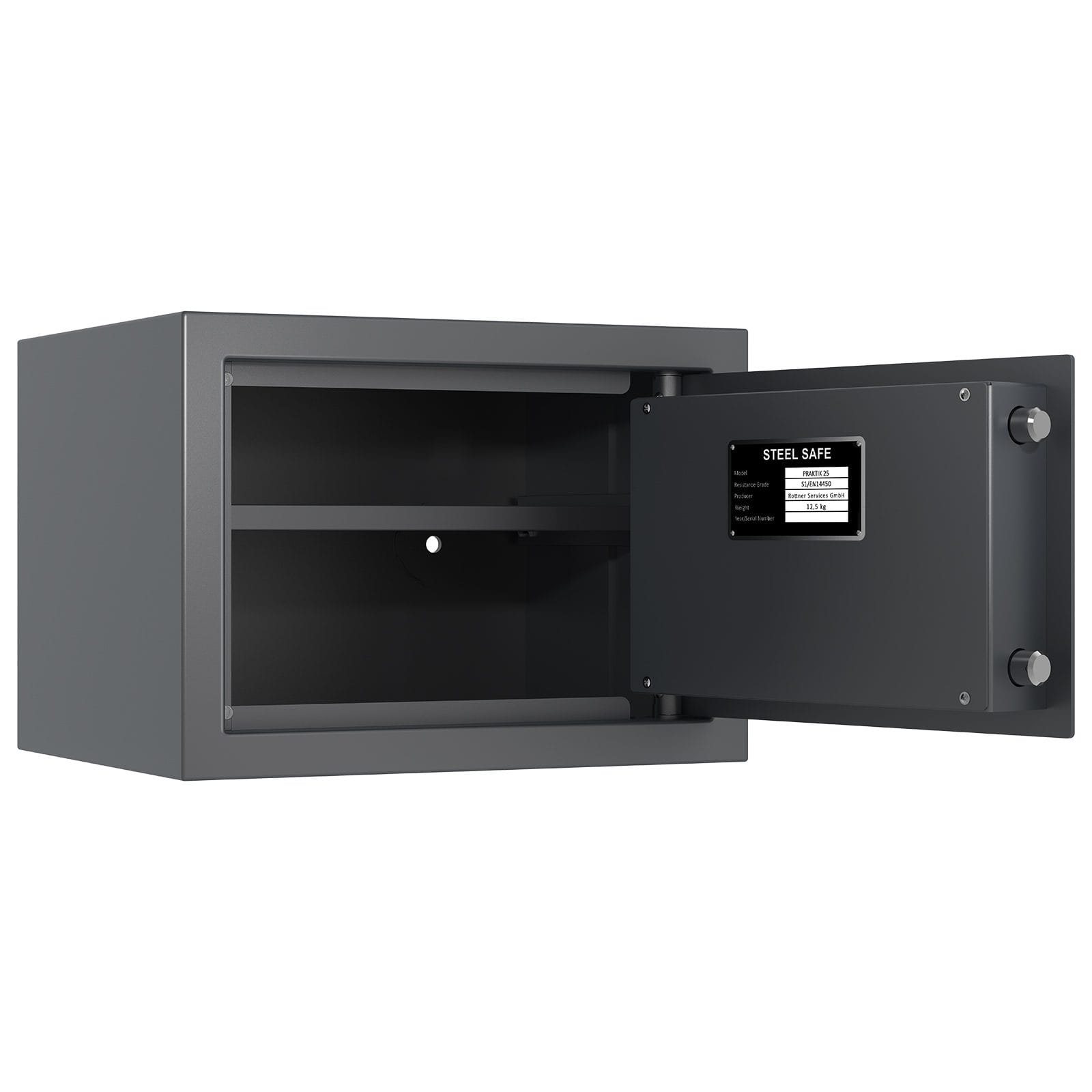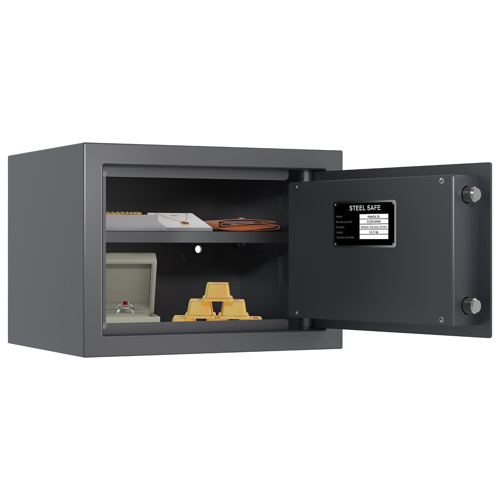 Trezor je vybavený certifikovaným trezorovým zámkom triedy A podľa normy EN 1300, ktorý zaručuje vysokú odolnosť voči manipulácii a neoprávnenému otvoreniu. Bezpečnostná trieda S1 podľa EN 14450 poskytuje spoľahlivú ochranu dokumentov, peňazí, šperkov, kľúčov alebo iných cenností.